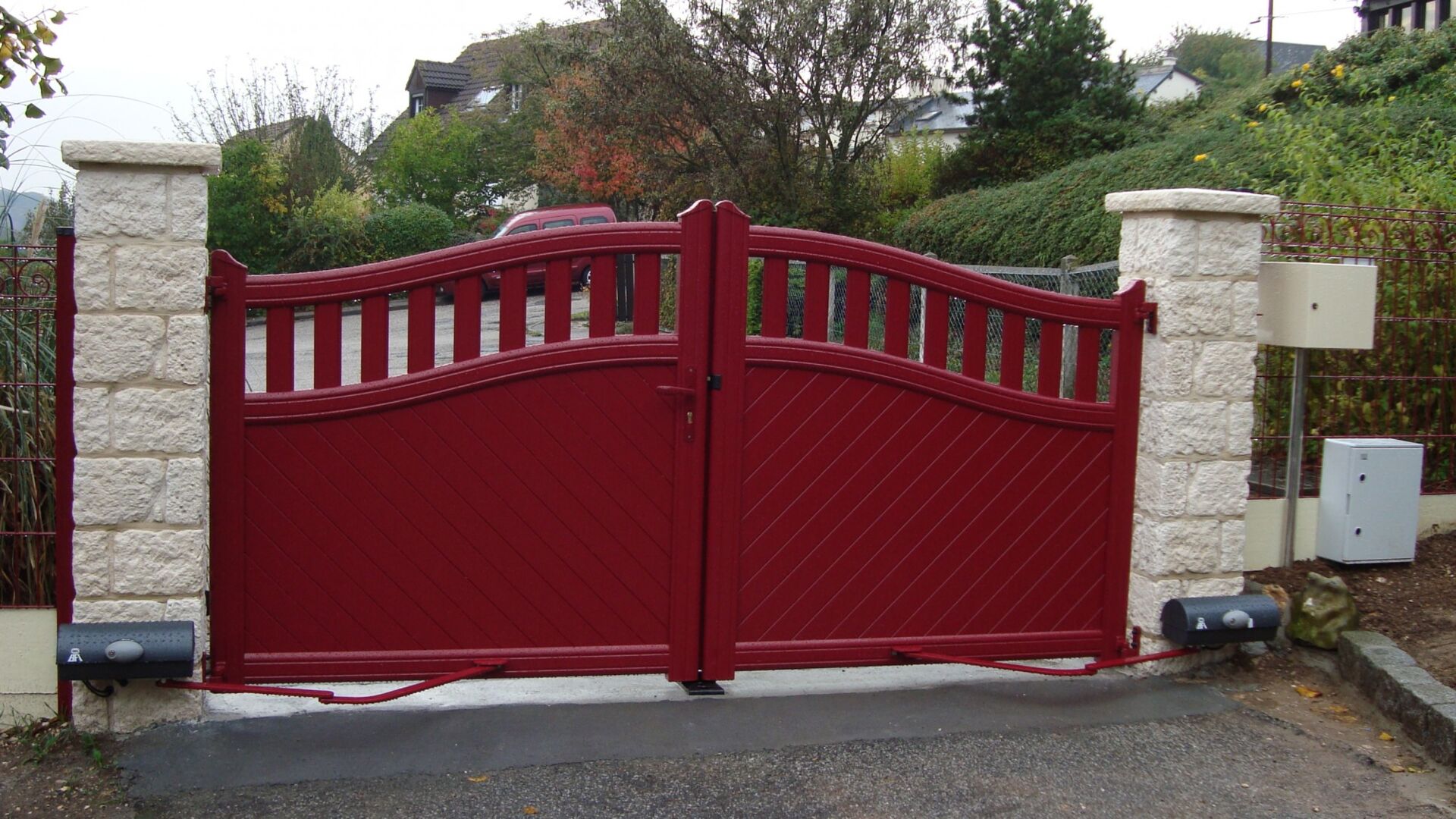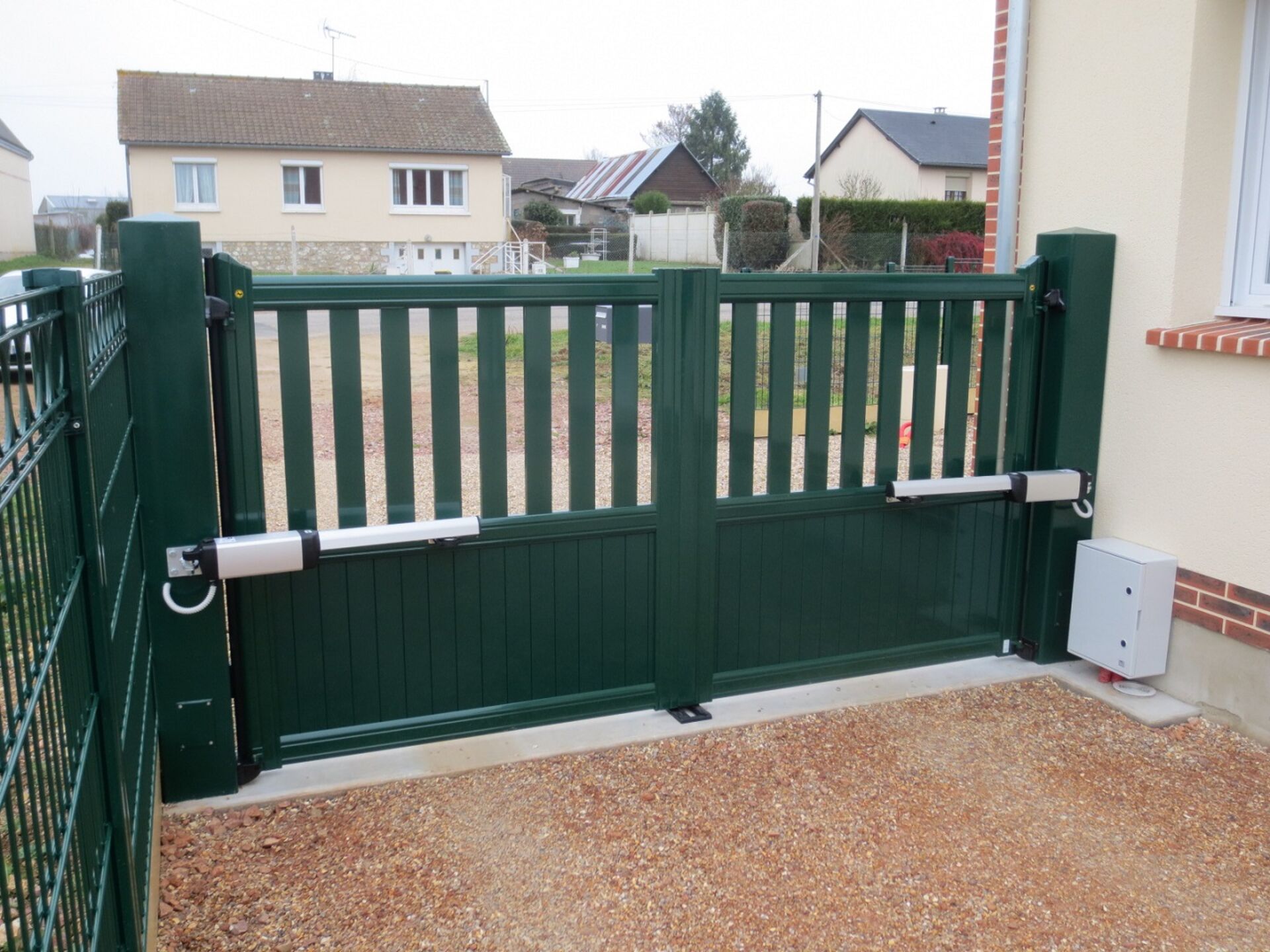Les Clôtures bataille vous proposent en normandie, que ce soit dans le 27, le 76 ou le 14, l'installation d'automatismes pour portails 2 vantaux par bras articulés, vérins ou moteurs enterrés.
