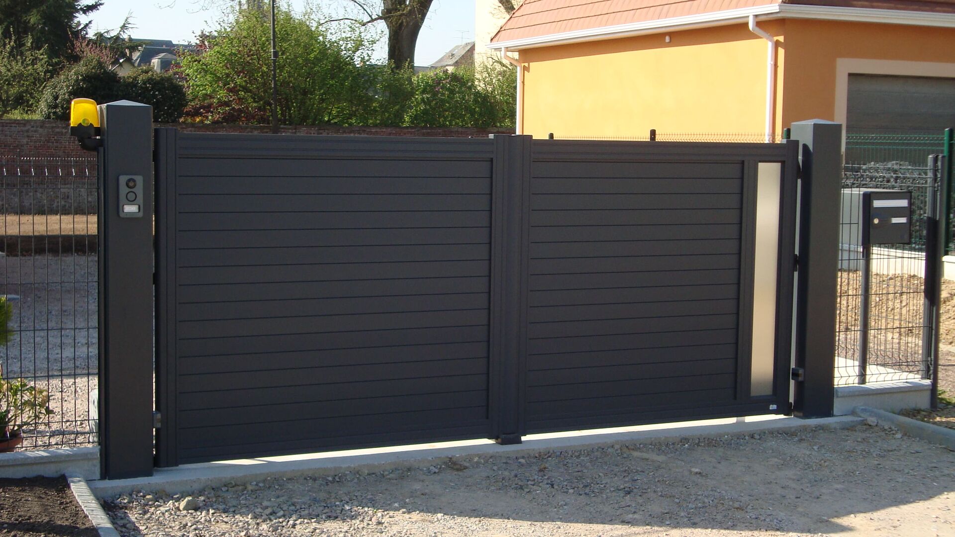 Le portillon en aluminium ou PVC coordonné bénéficie d'une quincaillerie de précision pour une fluidité d'utilisation quotidienne sécurisée.